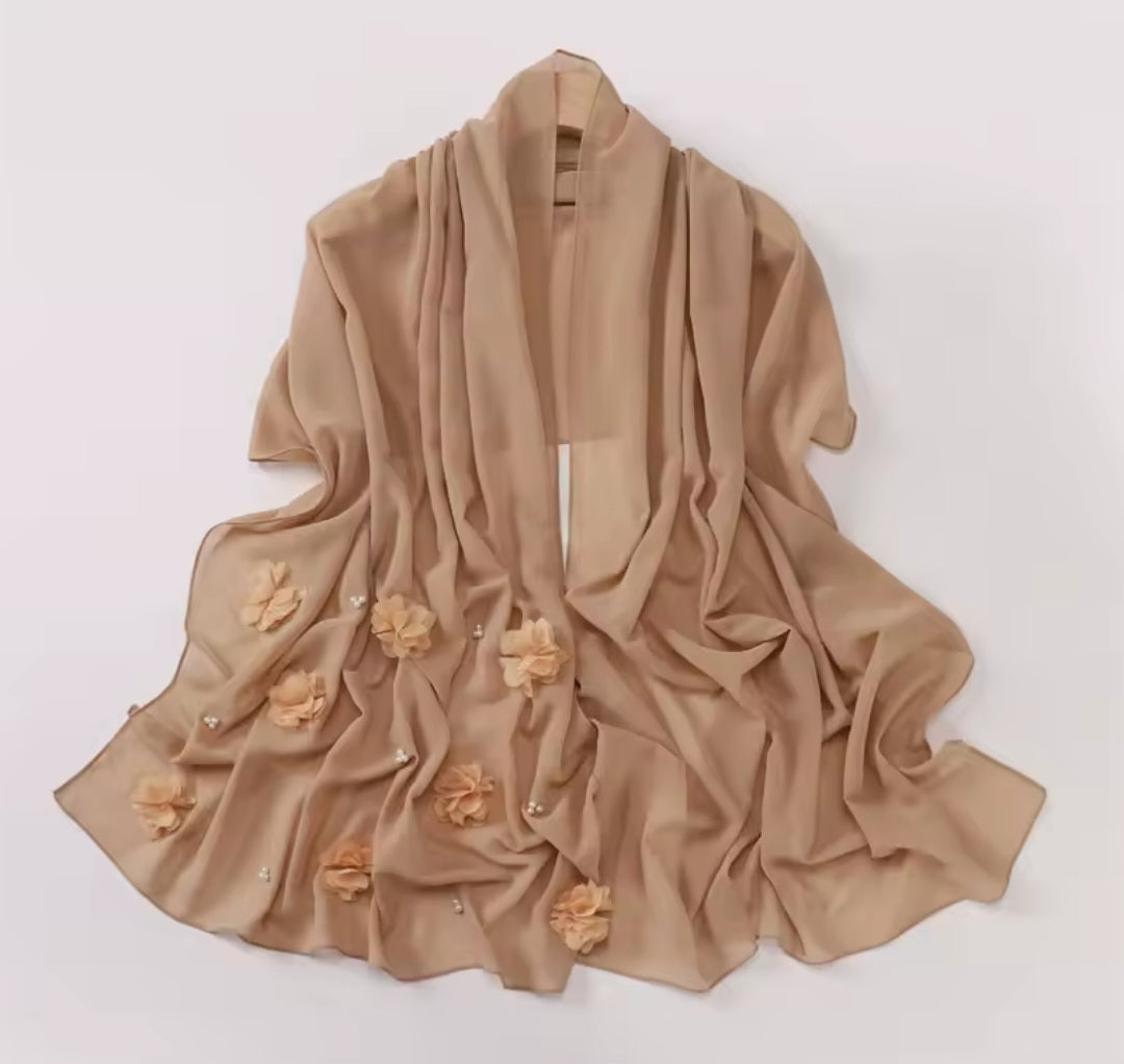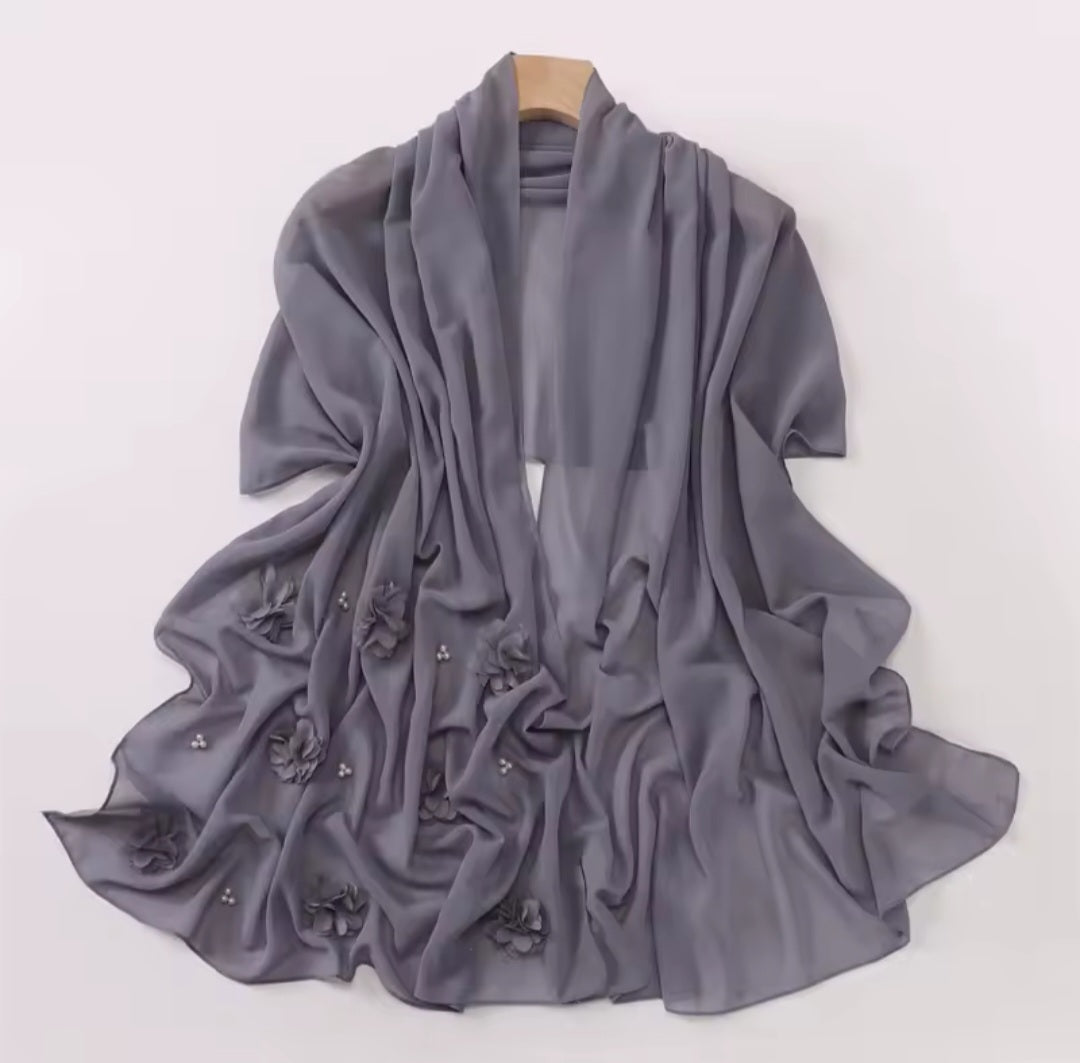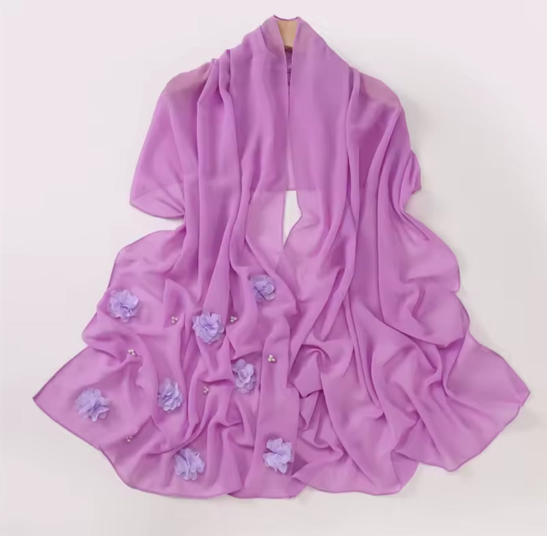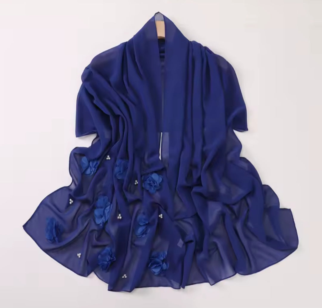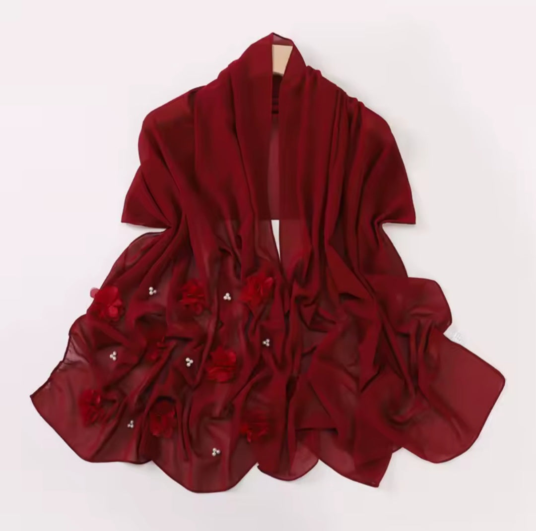 This elegant scarf features a beautiful floral design in 3D chiffon. Lightweight and stylish, the Rose floral scarf adds a touch of sophistication to any outfit. Perfect for both casual and formal occasions.